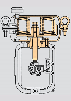 該系列是一種采用多種彈簧結(jié)構(gòu),重量輕、體積小、性能高、輸出力大的氣動薄膜式執(zhí)行機構(gòu)。其工作原理為:由調(diào)節(jié)儀表的電或氣信號經(jīng)定位器轉(zhuǎn)換而成的氣壓被輸入到膜室內(nèi),作用于膜片上產(chǎn)生推力,使輸出軸移動,同時壓縮彈簧直至和彈簧的反作用力相平衡,使輸出軸到達預(yù)定的位置,位置控制也可以通過氣信號(20-100KPA)直接作用于膜片上來實現(xiàn)。